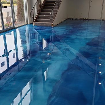 Epoxy is a two-part resin system that chemically cures into a hard, durable, and glossy surface that resists chemicals, stains, and impact. It’s affordable, proven, and customizable with flakes and colors, but requires long curing times, can yellow under UV exposure, and needs proper concrete prep to avoid peeling. Great for homeowners w